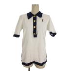 イヴサンローラン YVES SAINT LAURENT ロゴ ポロシャツ コットン 半袖 M ホワイト ■FF レディース