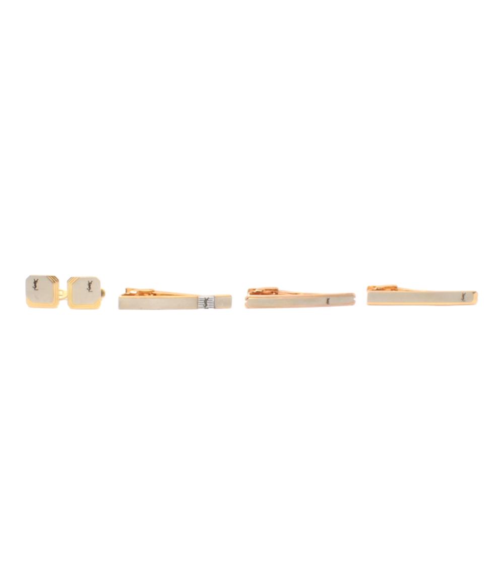 【全品5%OFFクーポン30日23:59迄】【中古】 イヴ・サンローラン タイピン タイバー カフス ロゴ 4点セット メンズ YVES SAINT LAURENT