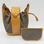 YVES SAINT LAURENT(イヴサンローラン)ヴィンテージ巾着ショルダーバッグ レザー×キャンバス ブラウン系 レディース