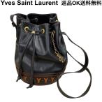 【返品OK】Yves Saint Laurent イヴサンローラン ショルダーバッグ 巾着 チャーム YSLロゴ Yカット レザー ブラック ビンテージ 【D467901112218ミ2506】