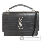 イヴ・サンローラン YVES SAINT LAURENT ショルダーバッグ パテントレザー 型押し ラウンド ブラック