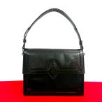【ポイント2倍】極 美品 YVES SAINT LAURENT イヴ・サンローラン ヴィンテージ YSL ロゴ レザー ワン セミ ショルダーバッグ ハンドバッグ ブラック 3460n【送料無料】【中古】