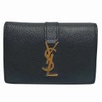 YSL イヴサンローラン レザー 二つ折り財布 ロゴ ブラック