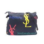 【ポイント2倍】極 美品 YVES SAINT LAURENT イヴ サンローラン ヴィンテージ LOVE 総柄 YSL ロゴ 金具 ナイロン ショルダーバッグ ネイビー 61146【送料無料】【中古】