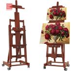 イーゼル 大型Hフレーム 角度調節可能 高耐久 キャスター付き 高さ145-230cm 最大203cmのキャンバスを収容でき デッサンイーゼル スケッチイーゼル 頑丈な木製