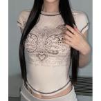 tシャツ Y2Kエンジェルウィングデザイン半袖Tシャツ レディース