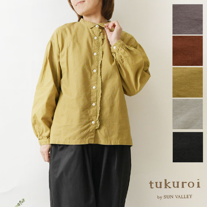 *【10%OFFクーポン対象商品】【tukuroi ツクロイ】(サンバレー sun valley) コットン リネン 平織 日本製品染 前立て レース ウィングカラー シャツ (tk810256)レディース 秋 冬 ナチュラル 服 新作 おしゃれ コーディネート ナチュランド 人気 30代 40代 50代 60代