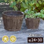 プランター セット 鉢 植木鉢 おしゃれ ガーデン プランター ガーデニング 北欧 鉢カバー 観葉植物 ウイスキー 樽風 FRP製 バレル型 プランター 大小 2個組