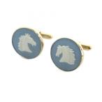 ウェッジウッド WEDGWOOD カフスボタン アクセサリー ロゴ ジャスパー 馬 青 ブルー ゴールド色 ■GY11 /MQ メンズ