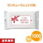 ウェットティッシュ 粗品 お礼 業務用 「サンキューウェット 10枚入×1000個」まとめ買い 景品 携帯用 感謝 ノベルティ 大量