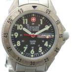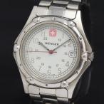 ウェンガー WENGER ジャンク品 091.0631 腕時計 ウォッチ クォーツ 黒文字盤 カレンダー付き シルバー色 ■GY11 /MQ メンズ