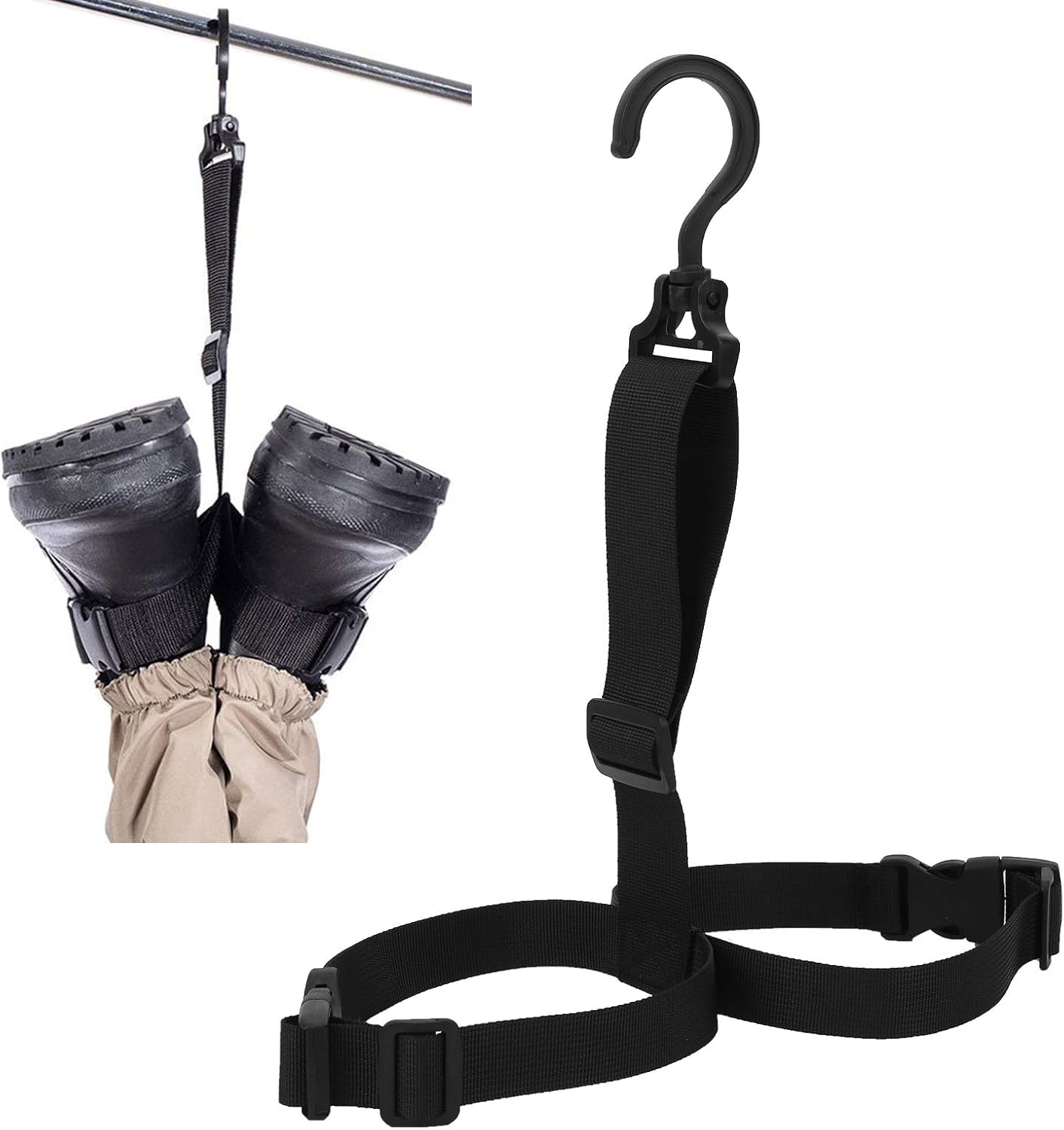 【互換品】調整可能 ウェーダーブーツハンガー黒強力 耐摩耗性レインブーツ乾燥機ストラップウェビングウェ