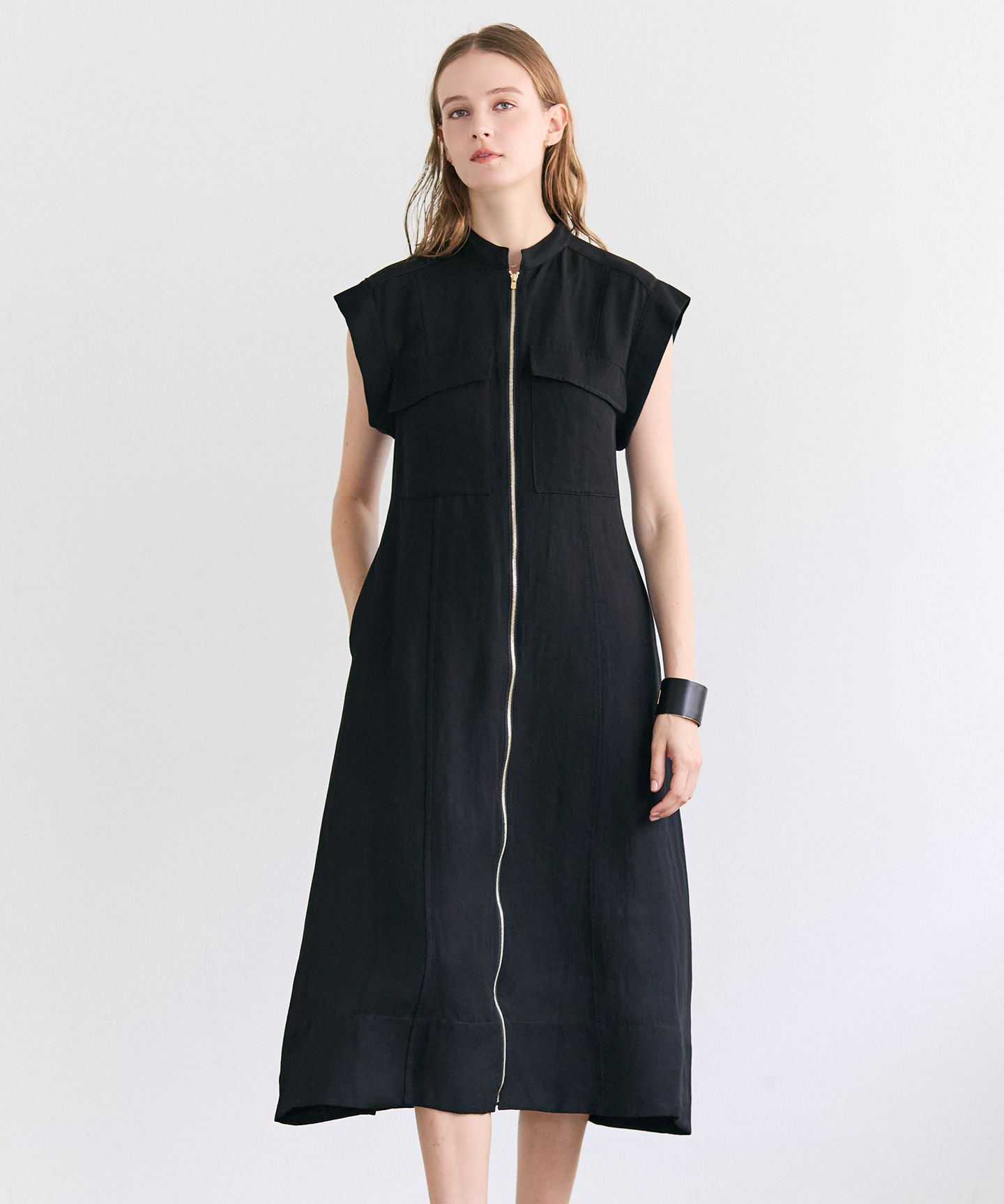 BEIGE,(ベイジ)/BERNARD / リネン混 フロントジップ スタンドカラードレス