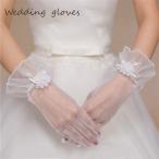 ウエディンググローブ 花嫁 ブライダル 手袋 ショート レース オーガンジー 花柄 刺繍 白 結婚式 パーティー 披露宴 二次会