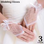 ウエディンググローブ 女性 花嫁 ブライダル 手袋 ショート 指なし レース フリル リボン 結婚式 パーティー 披露宴 二次会