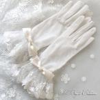 ウエディンググローブ ショートグローブ ウェディング手袋 ブライダル 結婚式 花嫁 二次会 披露宴 前撮り パーティー オフホワイト レース リボン 白