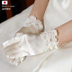 ウエディング グローブ ショート ショートグローブ ブライダル 日本製 サテン ウェディング オフホワイト アイボリー リバーレース 22cm G63