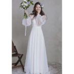 ウェディングドレス 二次会 花嫁 結婚式 Aライン 長袖 シンプル ウエディングドレス 安い 白 ブライダル 披露宴 発表会 前撮り お呼ばれ フォーマルドレス