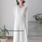 ウェディングドレス 二次会 花嫁 結婚式 Aライン 長袖 シンプル ウエディングドレス 安い 白