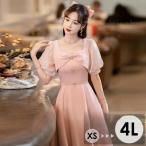 パーティードレス ウエディング ハワイ ミモレ丈ドレス 結婚式 披露宴 代 代 代 春 夏 秋 冬 ピンク XS S M L XL XL XL ビッグリボン スクエアネック