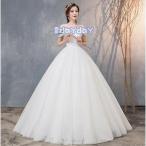 ウェディングドレス 結婚式 花嫁 プリンセスドレス 白ドレス ロングドレス 披露宴 編み上げ オフショルダー