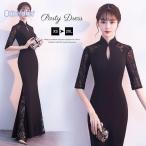 パーティードレス 結婚式 袖あり ウエディング ミモレ丈 ワンピース レース 大きいサイズ 大人 上品 お呼ばれ 食事会 二次会 披露宴 卒業式 成人式 黒 安い