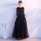 ブラックフライデー新商品 カラードレス 演奏会用ドレス ピアノ ブラック ブルー系 花柄ロングドレス 背中編み上げ 学生 20代30代40代50代60代 cd24001