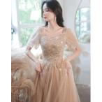 袖あり 刺繍 ミモレドレス パーティードレス 10代 20代 30代40代 Aラインワンピース ウエディングドレス お呼ばれ 二次会 披露宴 謝恩会 成人式