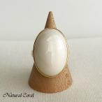 純白の白珊瑚 しろさんご サンゴ リング オーバル形 K18 ナチュラルコーラル