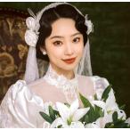 ウエディングベール ウェディングベール ヘアバンドベール フラワー レトロ ビンテージ風 パール 中世風 ブライダル 結婚式 二次会 披露宴 花嫁 挙式 前撮り
