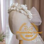 ウエディングベール ウェデイングベール 花冠ベール サテンフラワー リボン レトロ ビンテージ風 パール ブライダル 結婚式 二次会 披露宴 花嫁 挙式 前撮り