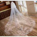 ウエディングベール ロング ベール ロングベール レース 刺繍 縁取り 結婚式 披露宴 二次会 ブライダル 花嫁 チュール 花柄 ウエディング用