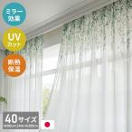 レースカーテン リーフ 柄 プリント 見えにくい 日本製 40サイズ UVカット 遮像 断熱 保温 ウォッシャブル カーテン 省エネ 一人暮らし 新生活 幅100