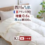 羽毛肌掛け布団 ダウンケット キングサイズ 夏用 西川 洗える 綿100% 羽毛ふとん 生地 増量0.6kg フランス産ホワイトダウン90% 日本製 肌布団 ウォッシャブル