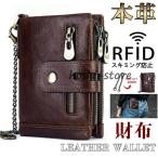 財布 メンズ 二つ折り 大容量 本革 牛革 コンパクト チェーン付 RFID対応 ダブルファスナー 小銭入れ離脱可 ビジネス レザー さいふ