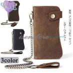 長財布 メンズ 二つ折り サイフ 軽量 薄型 レザー 牛革 チェーン付きウォレット ビジネス 財布 小銭入れ カードケース 大容量