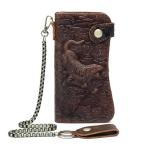 【特価】長財布 虎柄 メンズロングウォレット 小銭入れ付き 金属製 チェーン付き ウォレット メッシュレザー ハンドメイド 財布 元気虎 スマホ対応