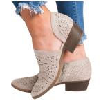 【並行輸入品】Hbeylia レディース ブーティー ボーホー ファッション ラウンドトゥ ホローアウト Vカット スリッポン チャンキー ミッ