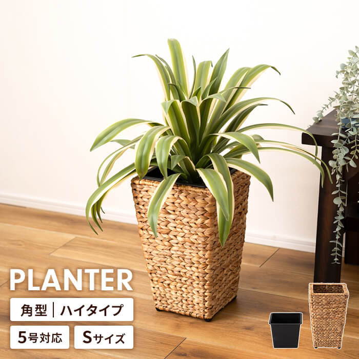 【楽天スーパーSALE10%OFF】プランターカバー 鉢入れ 5号鉢対応 ハイタイプ カバー 四角 編み かご ウォーターヒヤシンス インナーボックス付き 植木鉢 観葉植物 おしゃれ 室内 アジアン 北欧 シンプル モダン インテリア 雑貨 アジャスター付きベランダ ガ