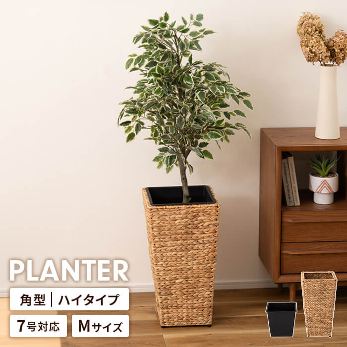 【楽天スーパーSALE10%OFF】プランターカバー 鉢入れ 7号鉢対応 ハイタイプ カバー 四角 編み かご ウォーターヒヤシンス インナーボックス付き 植木鉢 観葉植物 おしゃれ 室内 アジアン 北欧 シンプル モダン インテリア 雑貨 アジャスター付きベランダ ガ