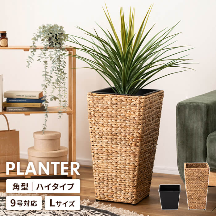 【楽天スーパーSALE10%OFF】プランターカバー 鉢入れ 9号鉢対応 ハイタイプ カバー 四角 編み かご ウォーターヒヤシンス インナーボックス付き 植木鉢 観葉植物 おしゃれ 室内 アジアン 北欧 シンプル モダン インテリア 雑貨 アジャスター付きベランダ ガ