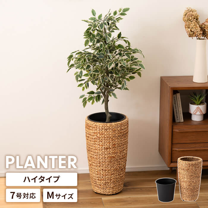 【楽天スーパーSALE10%OFF】鉢入れ プランターカバー 7号鉢対応 ハイタイプ カバー 円形 編み かご ウォーターヒヤシンス インナーボックス付き 植木鉢 観葉植物 おしゃれ 室内 アジアン 北欧 シンプル モダン インテリア 雑貨 アジャスター付きベランダ ガ
