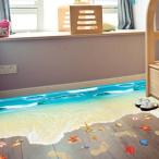 ウォールステッカー 床用 波打つビーチ 海 だまし絵 トリックアート インテリアステッカー リアル 転写 DIY 剥がせる