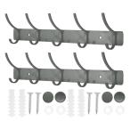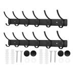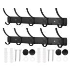 uxcell コートフックラック ステンレススチール製壁掛け 5フック付き フックレールウォールハンガー ベッドルーム バスルーム用 ブラック 2個