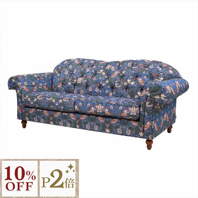 12/3(水)まで【10%OFFクーポン+P2倍】 3人掛けソファ Strawberry Tihef(いちご泥棒) Jennifer taylor ジェニファーテイラー アンティーク調 ヨーロピアン クラシック インテリア 家具 ファブリック