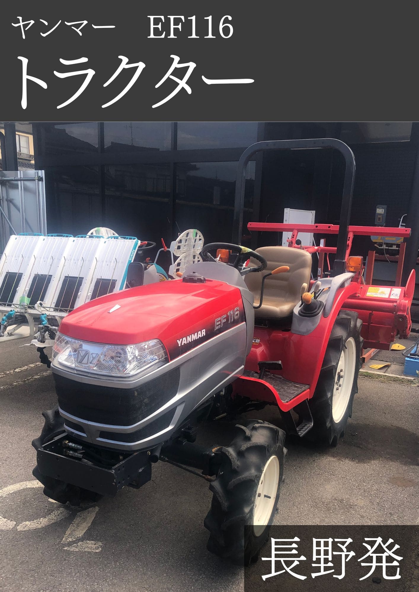 ヤンマー トラクター EF116 機体寸法:2660×1075×1890(mm) 出力16ps 燃料/容量 :ディーゼル軽油/27L