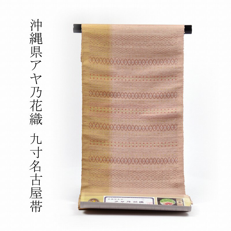 アヤ乃花織 お仕立て付き♪沖縄県 正絹紬地 手織り草木染 お洒落九寸名古屋帯(お太鼓柄)織り帯 /薄い茶色とうこん色 街着・お食事・観劇・小パーティ・大寄席などの茶会・お稽古・ご挨拶・お客様迎え【送料無料】