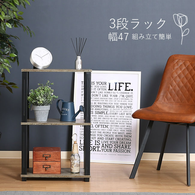 【期間限定10%OFF】3段ラック ラック 3段 シンプル 収納 収納家具 木目 ナチュラル ブラウン ブラック 北欧 人気