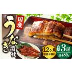 【ふるさと納税】【全12回定期便】福岡県産 うなぎ 蒲焼 大3尾 合計 480g(1尾あたり 160g以上)《豊前市》【福岡養鰻】[VAD016] 蒲焼 ウナギ お祝い プレゼント 贈答 ギフト 国産うなぎ 国産鰻 人気 おすすめ 福岡産