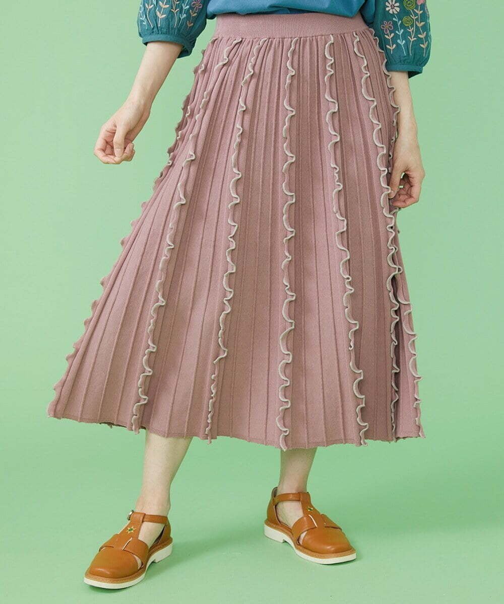 【SALE/50%OFF】Jocomomola 配色メロウニットスカート ホコモモラ スカート ロング・マキシスカート グリーン ピンク【送料無料】